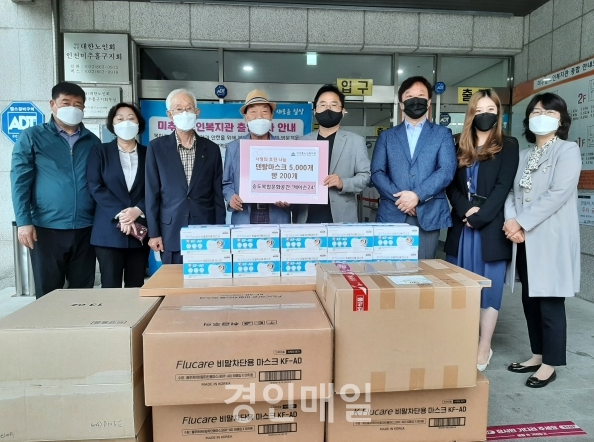 (인천=김정호기자)케이슨24는 17일 미추홀노인복지관에 빵 200개와 덴탈마스크 5000매를 전달했다.