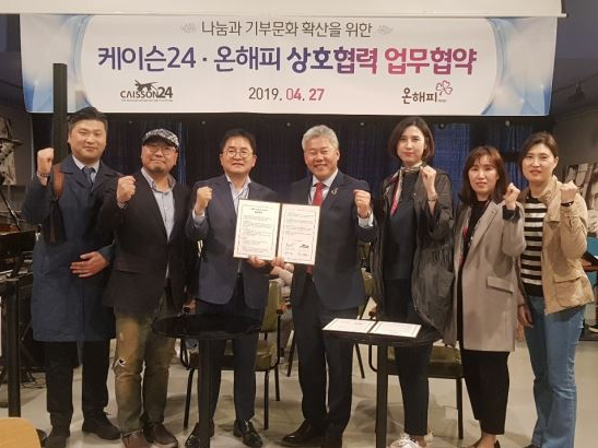 UN경제사회이사회 특별협의지위 NGO 온해피(대표이사 배인식)와 케이슨24(대표 허승량)는 나눔문화 확산을 위한 업무협약을 체결했다고 29일 밝혔다.