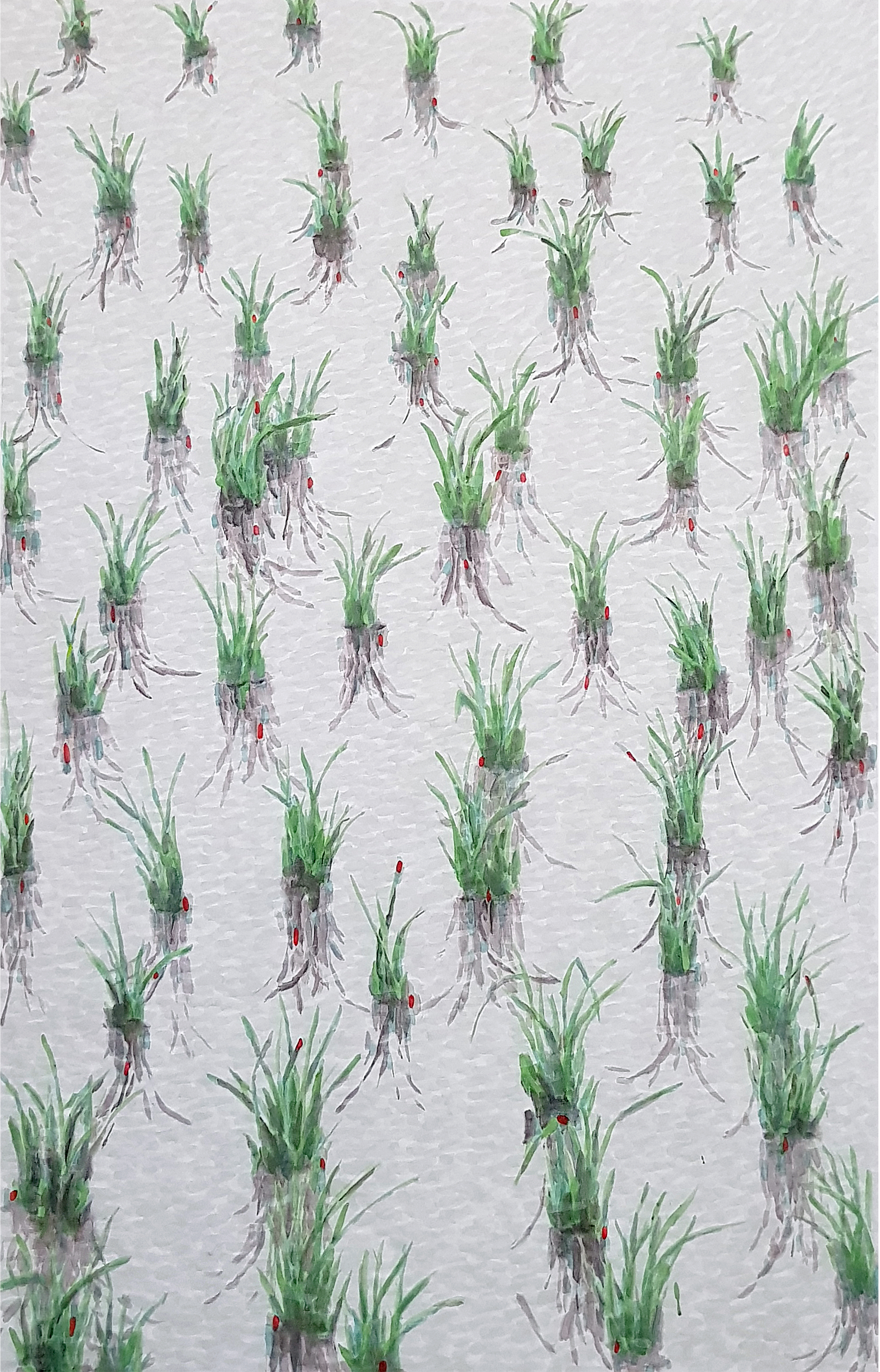 2002년 수묵 점묘방식으로 군상시리즈를 작업하면서 연구되어진 「부분과 전체」 또는 「전체와 부분」의 상호 순환적 관계의 표출된 흔적을 사유함에서 출발되어진다. 하나의 점묘는 수묵의 짓눌림으로 한지에 스며드는 과정을 스스로 습득하면서 불완전한 형체를 전개시키며 무리지어 헤매는 유령의 실체를 만들어 낸다. 이것은 마치 거울 속에 비춰진 복제된 또 다른 것들에 대한 의구심이며, ‘바라보고자하는 대상’ 또는 ‘보여지려고 하는 대상’에 대한 시각적 집착의 표상이라 말하게 된다.