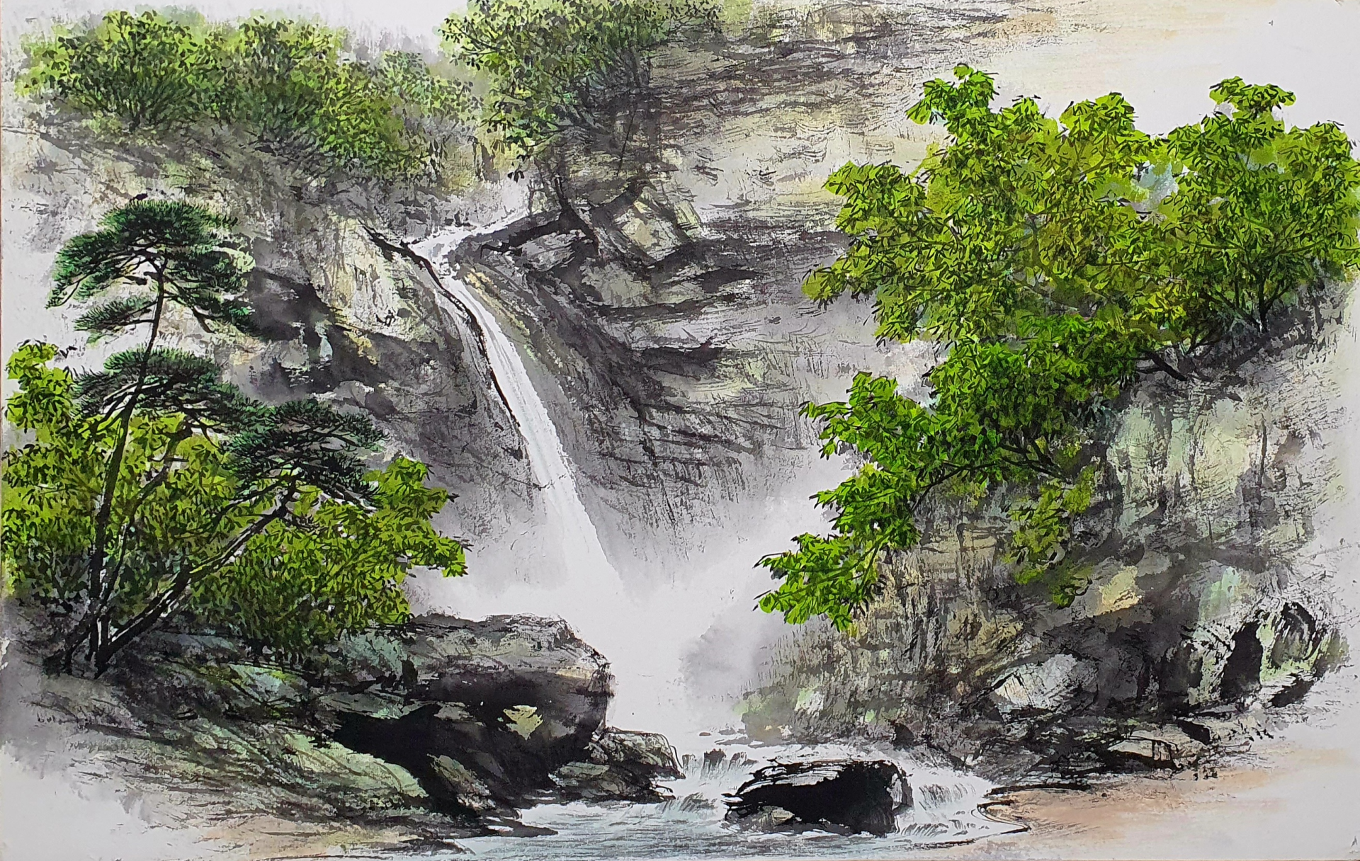 우리 전통 회화를 현대시대의 흐름에 맞게 전통을 지키면서 변화있게 전파하고 싶다 사물의 정교하고 사실적인 묘사를 중요시 하지 않고 나만의 추억,느낌, 사상을 사물에 의탁하여 수묵과 담채를 쓰고 때로는 강렬하게 표현하였다 가장 중요시 하는 것은 기운생동으로 운동감과 생명력을 함축해서 나타낼 수 있는 예술적인 선을 표현하고자 하였다 그래서 힘과 속도감이 느껴지는 선으로 생동감 있게 묘사하는 그림이다 주로 자연을 주제로 산은 자손대대 출세 등용을 뜻하고 소나무는 관직에 오르고 이름을 널리 알리고 건강을 뜻하며 물은 재물이 들어와 풍요와 번창을 뜻하는 등 생기와 밝은 에너지가 들어와 길운이 들어오는 한국적인 정서를 담은 그림이다
