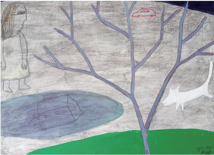 observe female images in her works not in a sexual way,but in a neutral way. she tried to project her own experience and concerns as a woman artist in korea. she continues series of <Diary>,patiently doing avarious drawings of the people in nature as well.