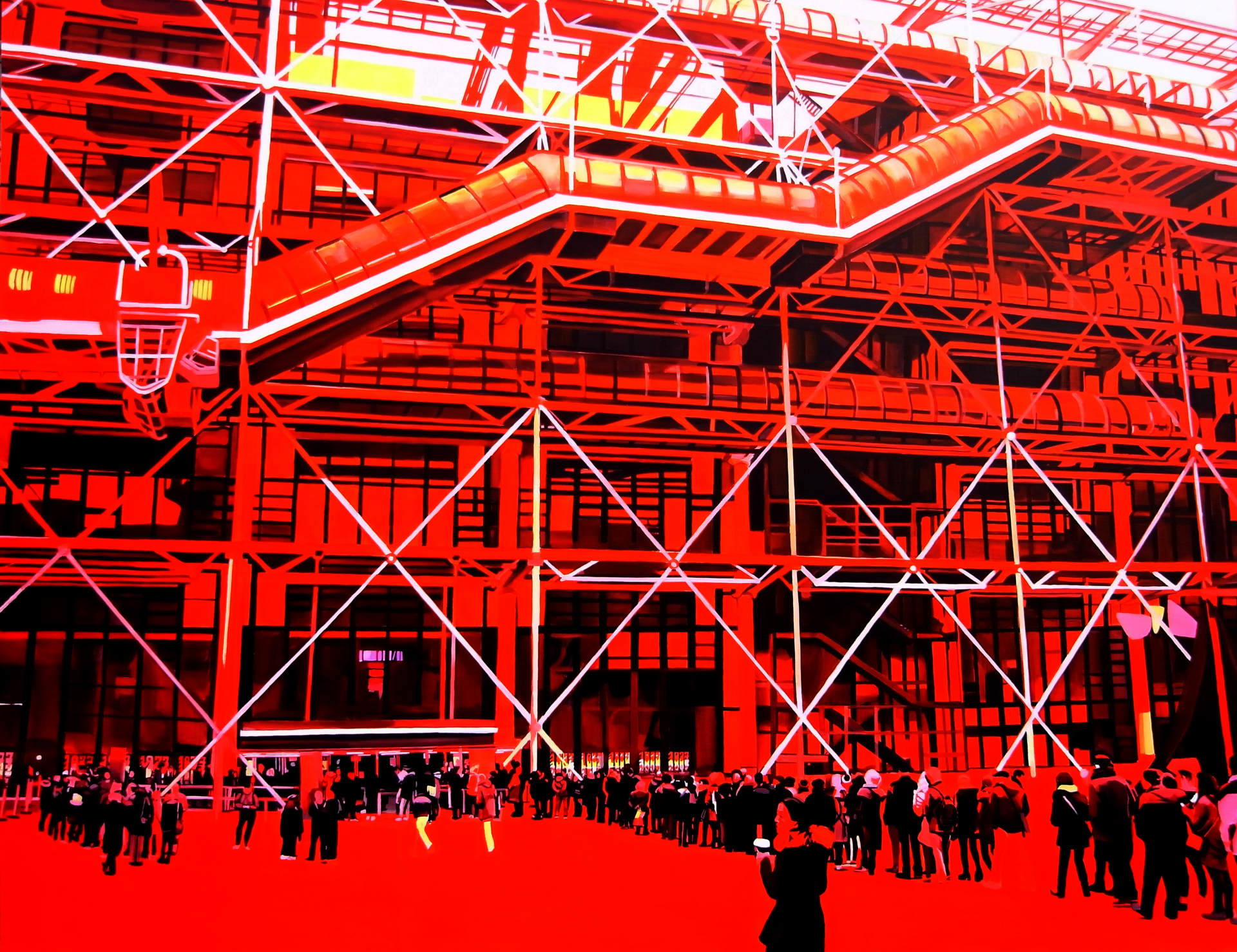 작품 <퐁피두센터 에스컬레이터(Pompidou Center Escalator)>는 캔버스 위에 아크릴 채색하였다. 16세기부터 19세기 중반까지의 서양미술사에 언급된 걸작들을 소장하고 있는 파리의 미술관들을 관람하기 위해 이동하면서 느낀 바로는, 과거가 현재의 여행이 된 듯하거나, 아니면 마치 영화 ‘미드나잇 인 파리’처럼 현재 여행이 그토록 환상적이기 때문에 마치 과거인 것 같았다. 이처럼 몇 세기가 응축되어 있는 것처럼 파리는 진정으로 무시간의 대도시이다. 서양미술의 역사라는 시간적인 것에서도 이를 구성하는 사조들이 단지 용해되는 통일성을 더욱더 강렬하고 광범위하게 보이도록 서로의 사조들은 멀리 분리된다. 멀리 분리된 동시대미술을 전시하는 미술관 중 하나인 퐁피두센터는 독특한 건축물의 특징을 가지고 있다. 그것은 바로 입장권에서도 활용된 퐁피두센터의 에스컬레이터이며, 그것은 마치 파리의 에펠 탑처럼 퐁피두센터의 상징물과 같다.