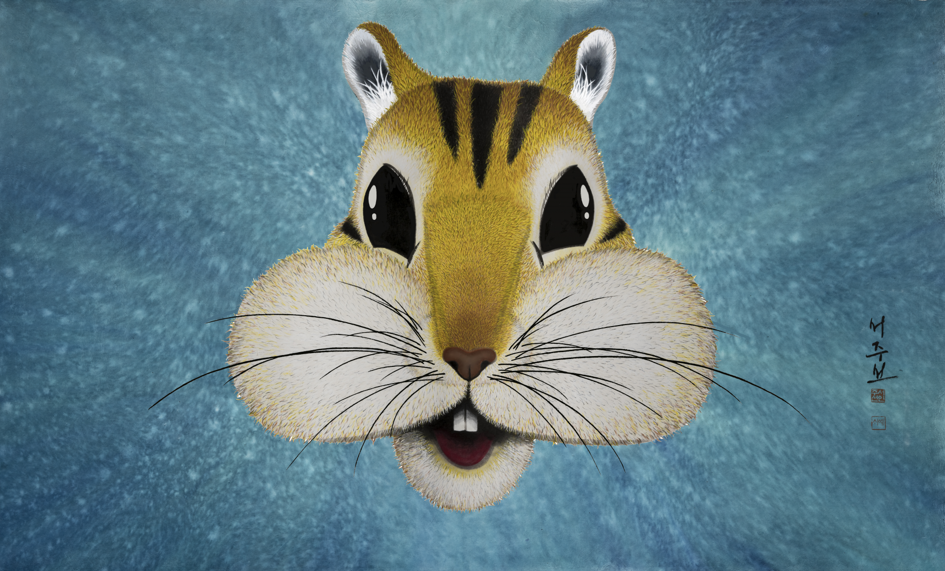 캐릭터로 그려오던 다람쥐 그림으로 호랑이와의 만남, 즉 극과 극의 만남을 위하여 렌티큘러를 만들기 위한 원화 작품임