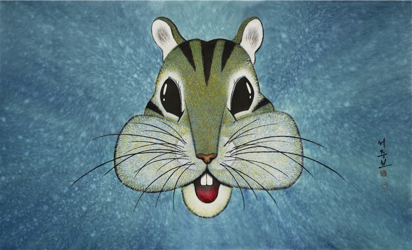 캐릭터로 그려오던 다람쥐 그림으로 호랑이와의 만남, 즉 극과 극의 만남을 위하여 렌티큘러를 만들기 위한 원화 작품임